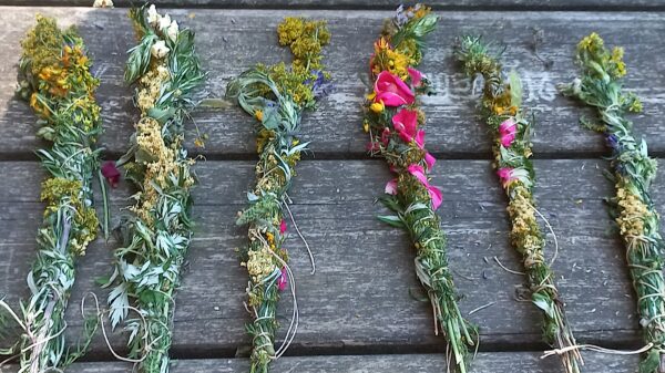 Wir machen einen Kräuterspaziergang, aus den Kräutern binden wir duftende Räucherbüschel, setzen ein heilsames Johanniskrautöl an, tauchen ein in die Qualität magischer Sonnwendpflanzen und feiern das Sonnwendfest mit Ritual und Speis und Trank.